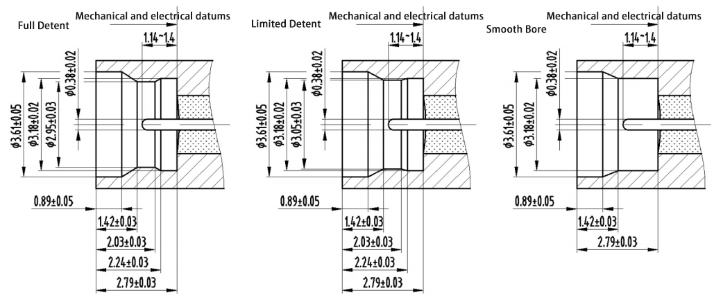 Vzduchem utěsněné RF koaxiální konektory typu SMP-J mají tři formy rozhraní: úplný únik, poloviční únik a světelný otvor. Při pojmenování modelu F znamená úplný únik, L znamená poloviční únik a S znamená světlou díru. Rozměry rozhraní jsou rozděleny na standardní rozměry rozhraní a krátké rozměry rozhraní, přičemž oba jsou kompatibilní se zástrčkami typu SMP-K.