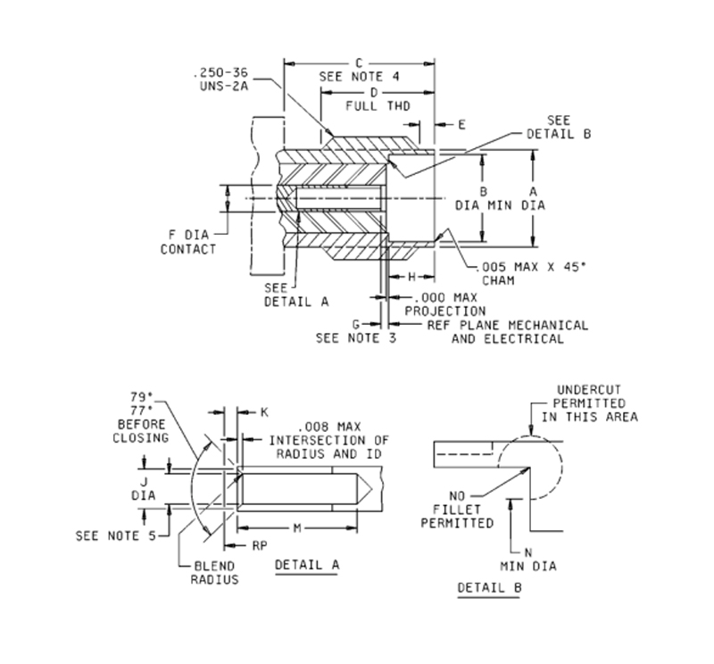 3. Dřívější kvalifikované díly s maximální kontaktní recesí 0,030 palce (0,76) nejsou přijatelné pro použití ve vládě. Při určování, zda se při údržbě a výměně dílů nepoužívá konstrukce s recesí .030, je třeba postupovat opatrně.