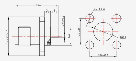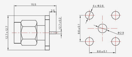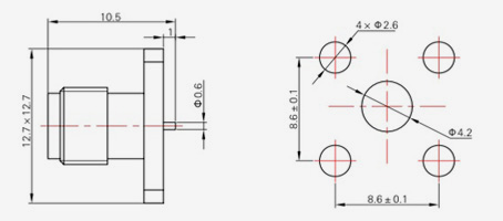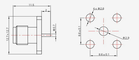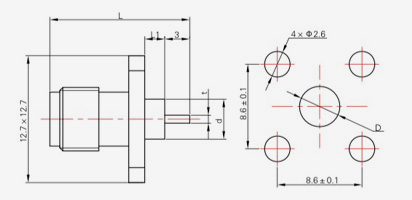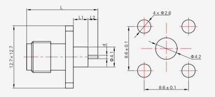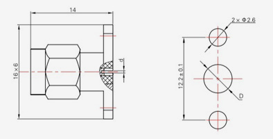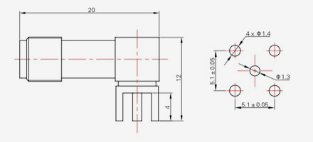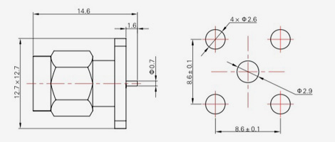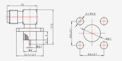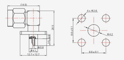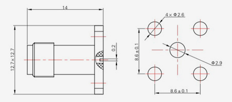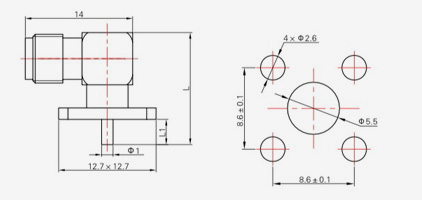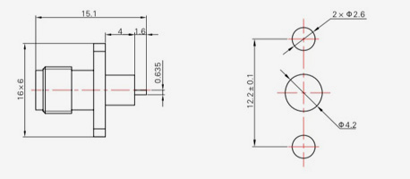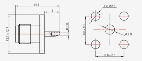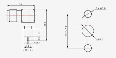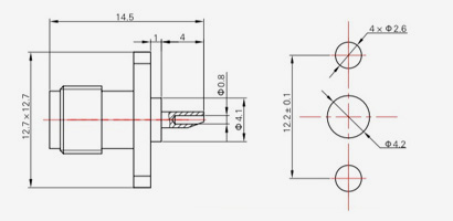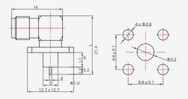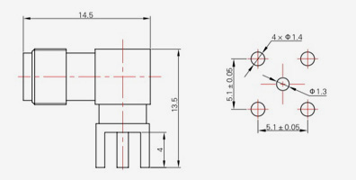 | SMA-KFD45 | 14.4 | 2.4 | 0,5×0,2 | Φ4.1 | Φ4,2 |