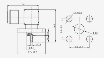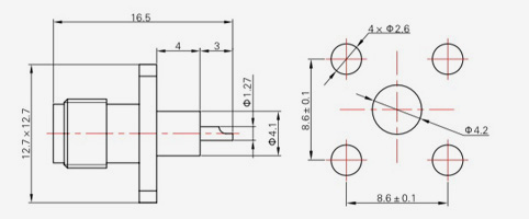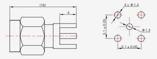 | SMA-KFD13 | 16 | 4 | 0,5×0,2 | Φ4.1 | Φ4,2 |